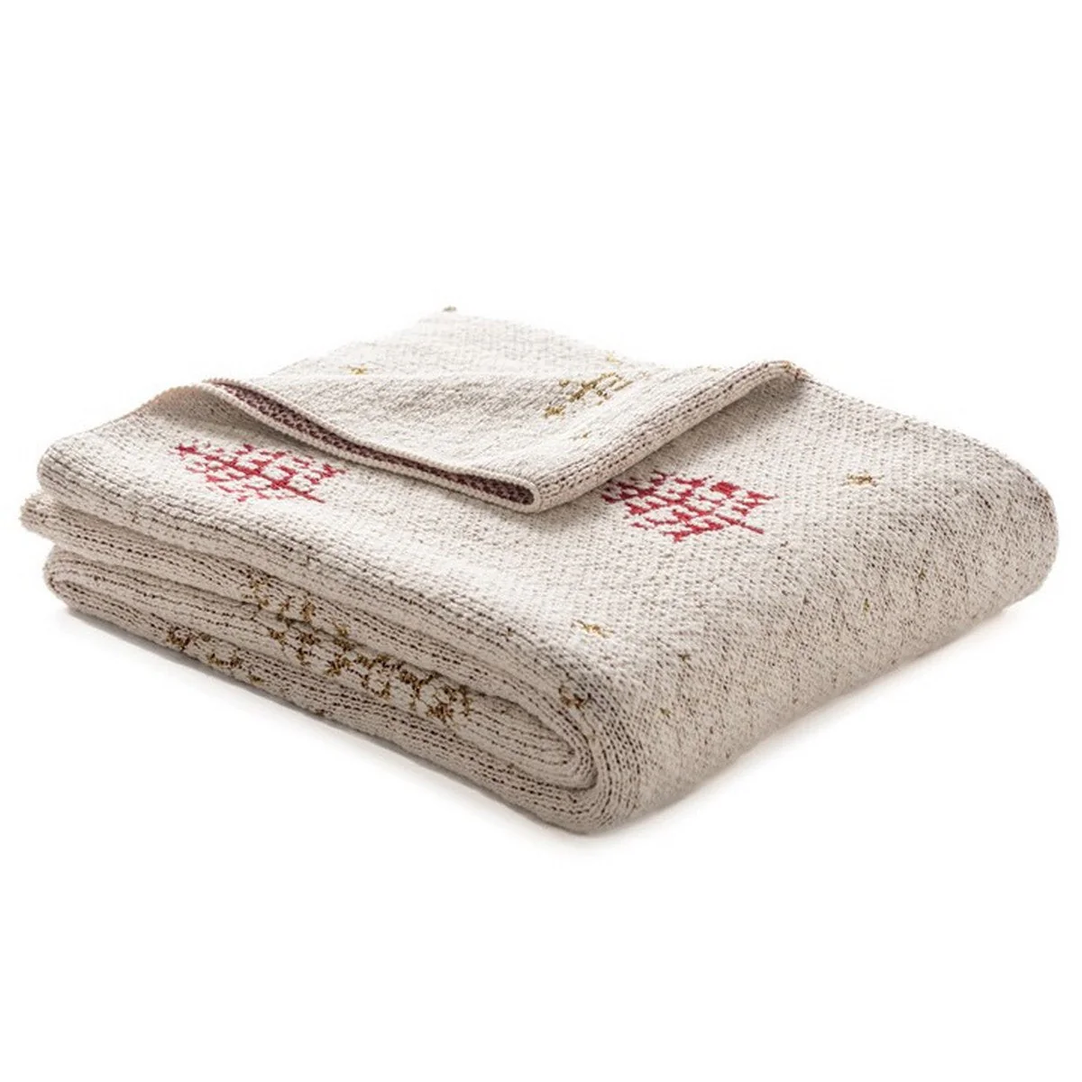 Cream throw with red and gold fir trees