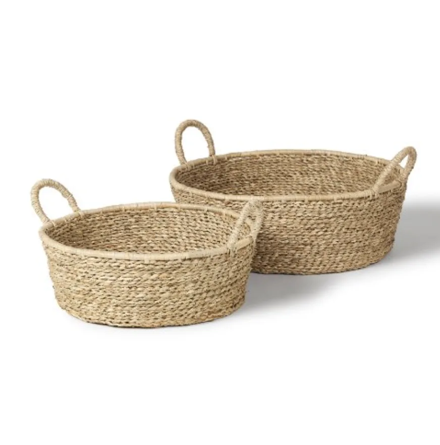 The Amelie seagrass basket, is made of natural seagrass and perfect for housing decorative objects, blankets or storing household items.