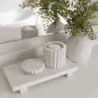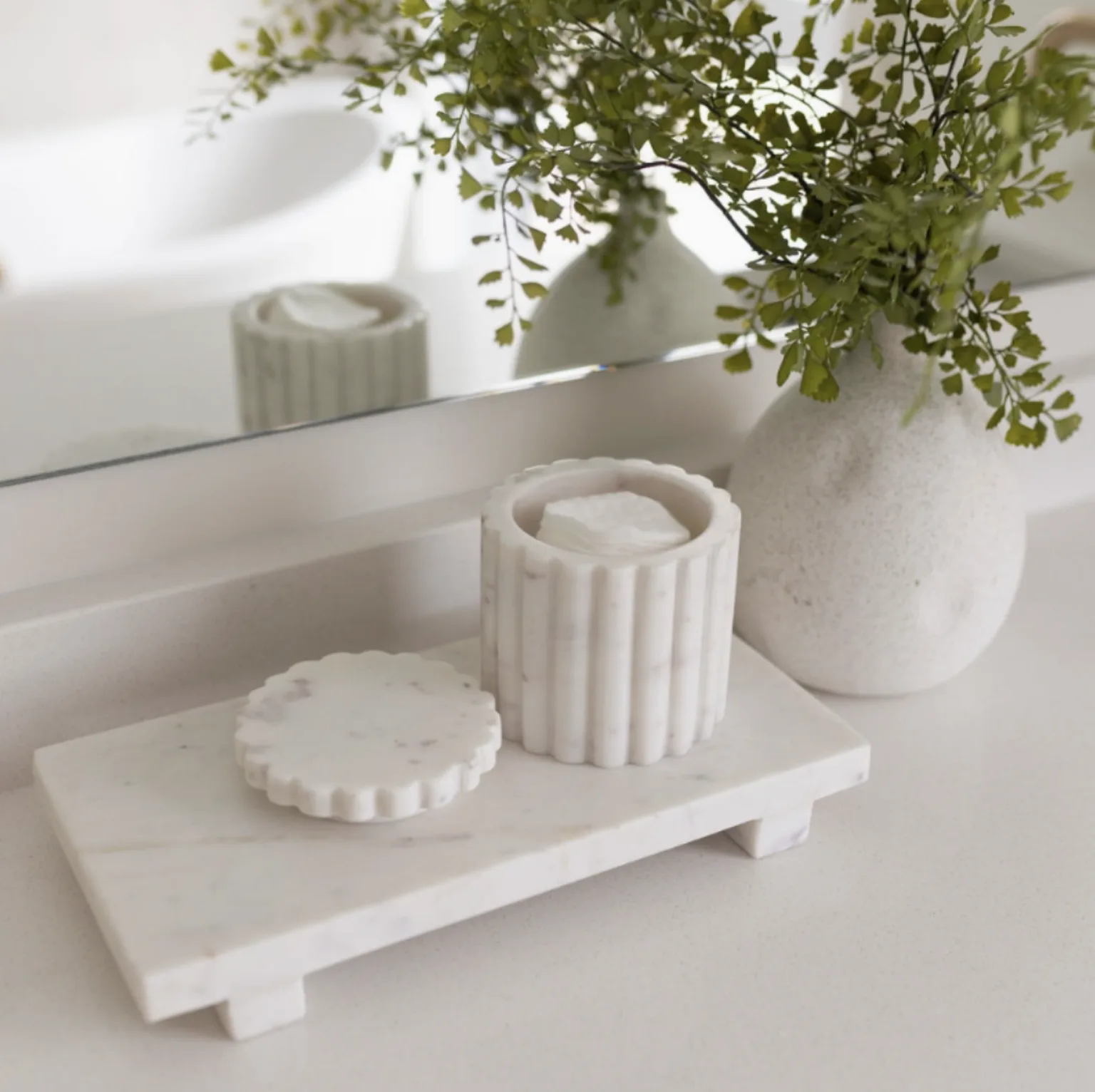 The White Marble Fluted Canister is a practical and stylish addition to any kitchen, bathroom, or living room. Its versatile design allows it to discreetly store and organize various items, making your space tidier.