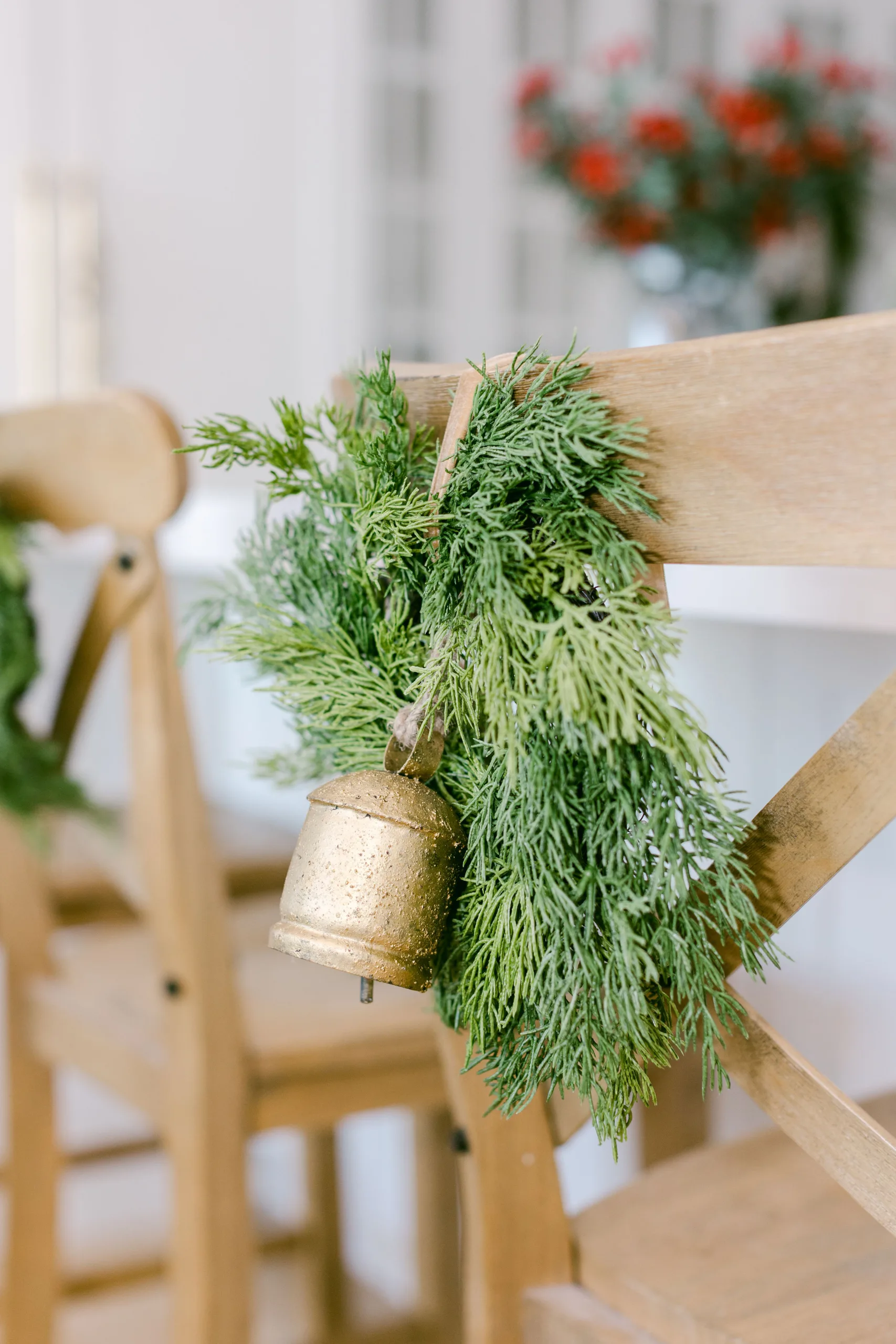 The most realistic faux cedar wreath we have seen! Perfect hanging on the back of a chair, or line several in a window!