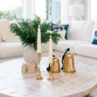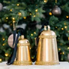 These large golden bells feature a soft metallic finish and a delicate floral pattern, each hanging from a rich black velvet ribbon. They’re perfect for adding a classic touch to your Christmas tree, tucking into the corners of a garland, or hanging on a festive wreath for a timeless holiday look. Each sold individually. Made of metal. Dimensions: 5″ D X 7″ H