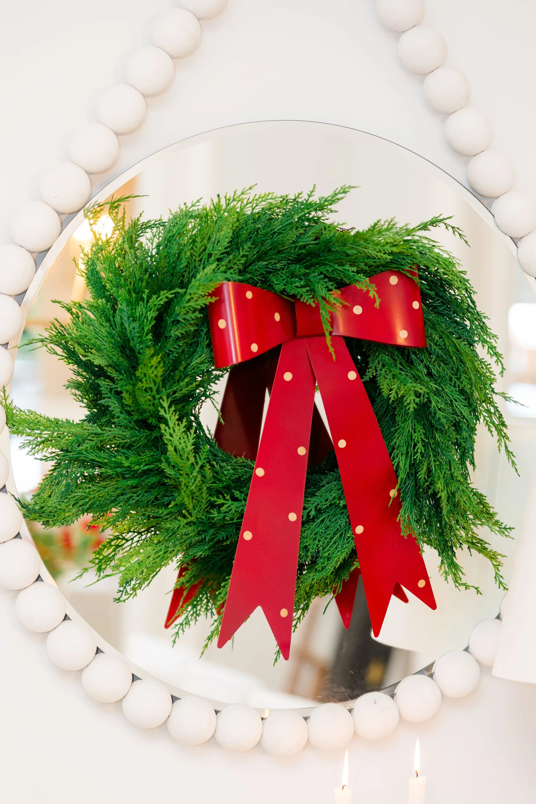 11-3/4″W x 2-1/2″D x 17-1/2″H Metal Bow Wall Décor w/ Polka Dots, Red & Cream Color