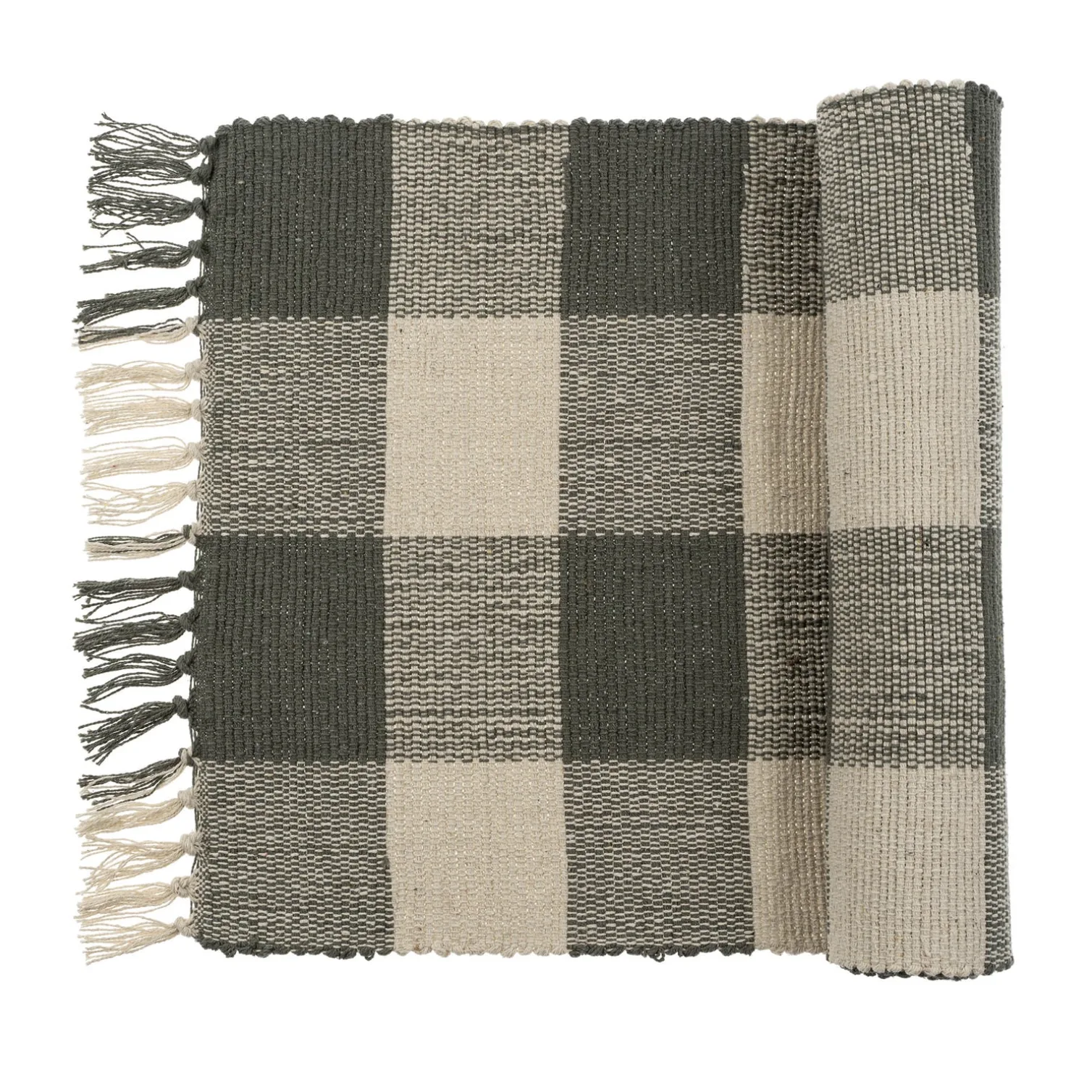 - 100% cotton with tasseled edges and a gingham pattern.