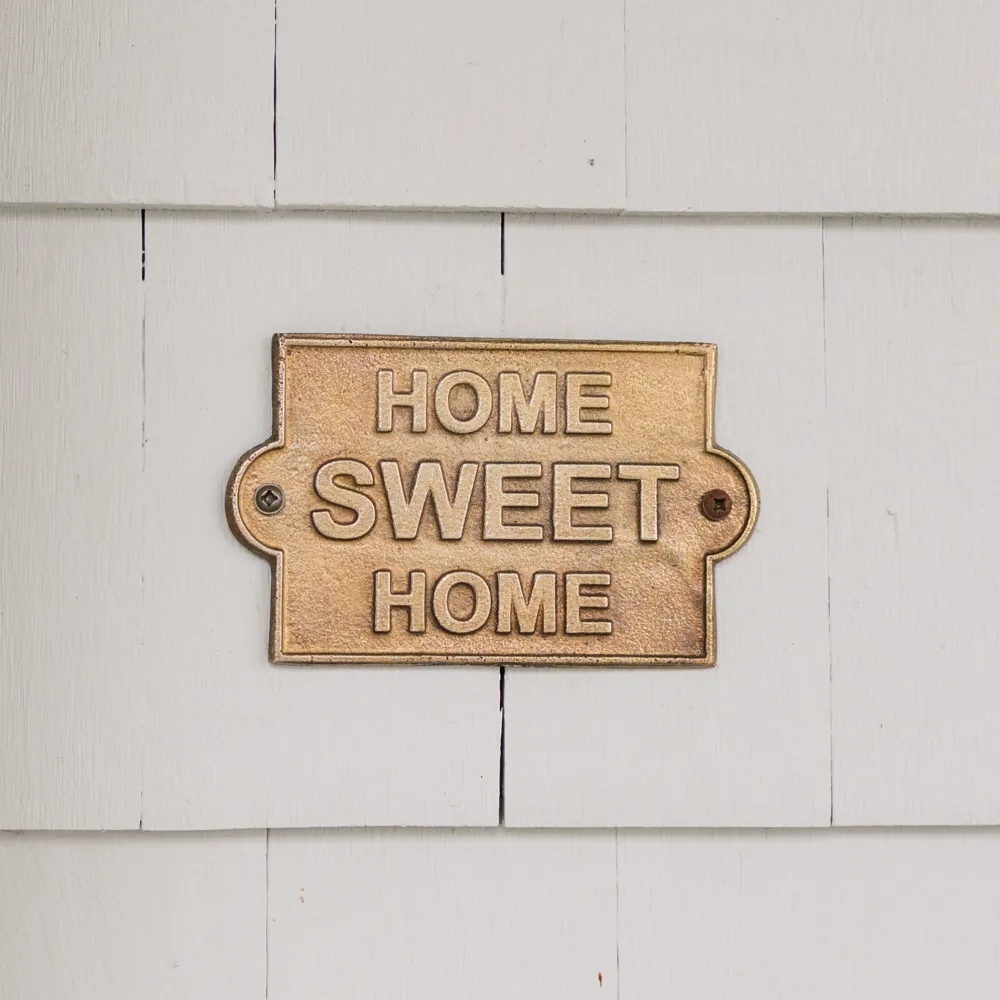 A nest and Nook and Indaba collaboration. This brass home sweet home sign is the perfect addition to your front entrance, inside or out.