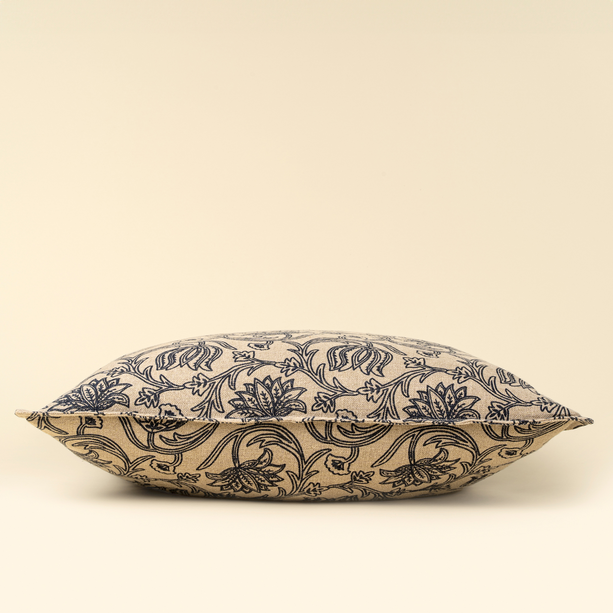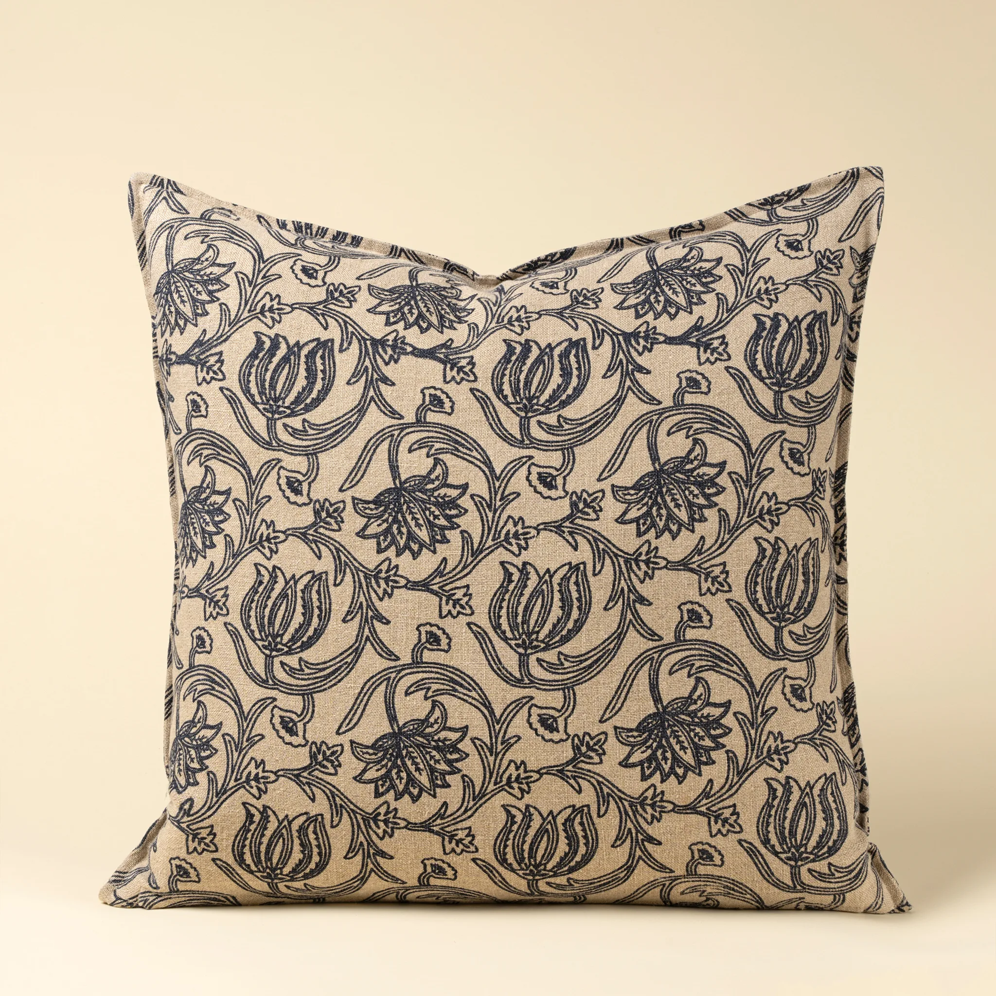 24×24 Lotus Linen Pillow, Blue, Modern Decorative Pillows with Floral Charm and Sustainable Materials
