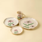 Bring a playful yet refined touch to your table with the Painted Petals Plate. Crafted from 100% stoneware and finished in a gentle glossy glaze, this dinnerware piece features a hand-painted aster bloom that feels like a soft watercolor sketch. Its organic, hand-formed shape and warm ceramic tones peeking through add a charming cottage aesthetic. Whether used for dinners or displayed as wall art, this handcrafted product doubles as decor and function. It’s as practical as it is beautiful, build a collection and hang them together for an eclectic, curated display.