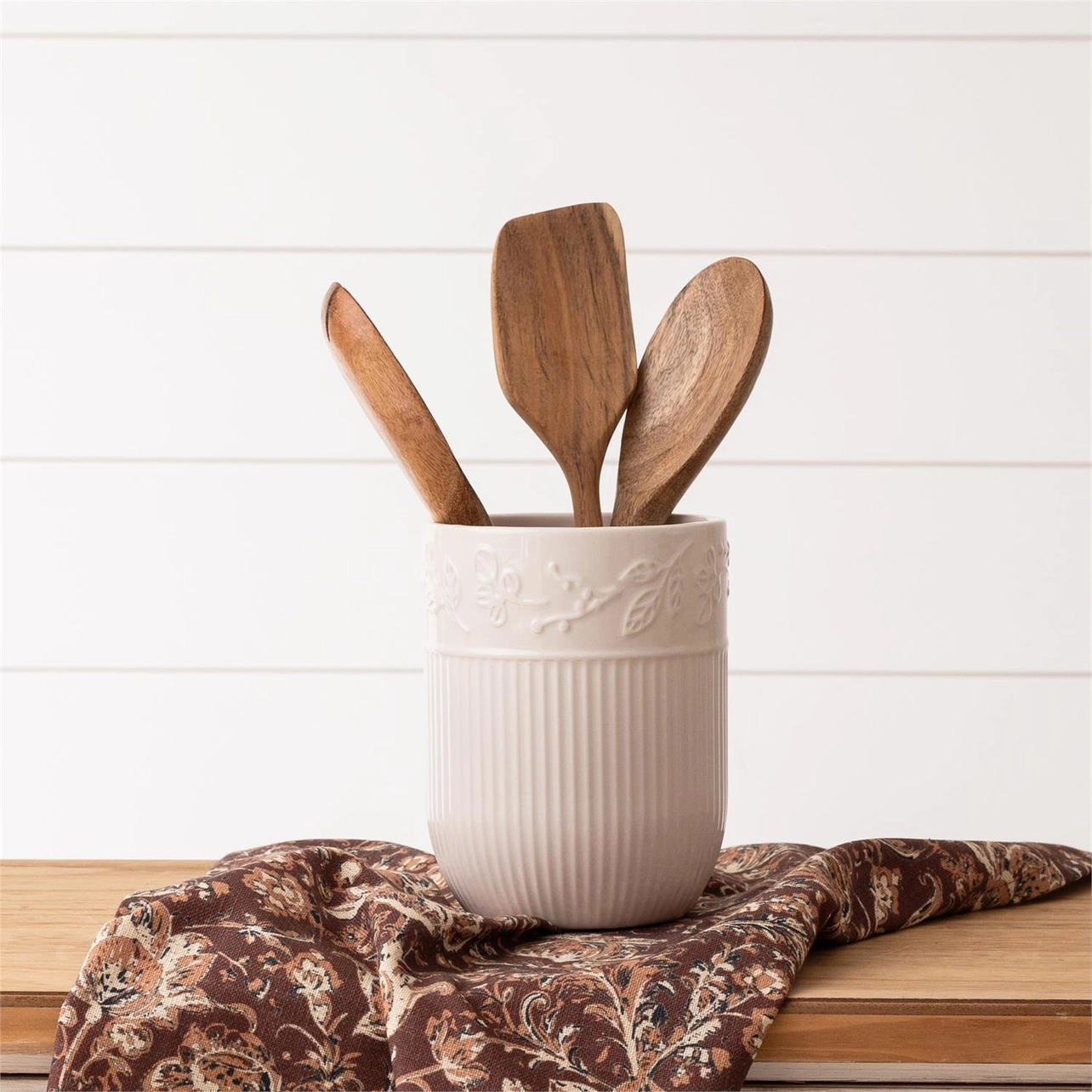 Ribbed leaf utensil holder/crock quantity