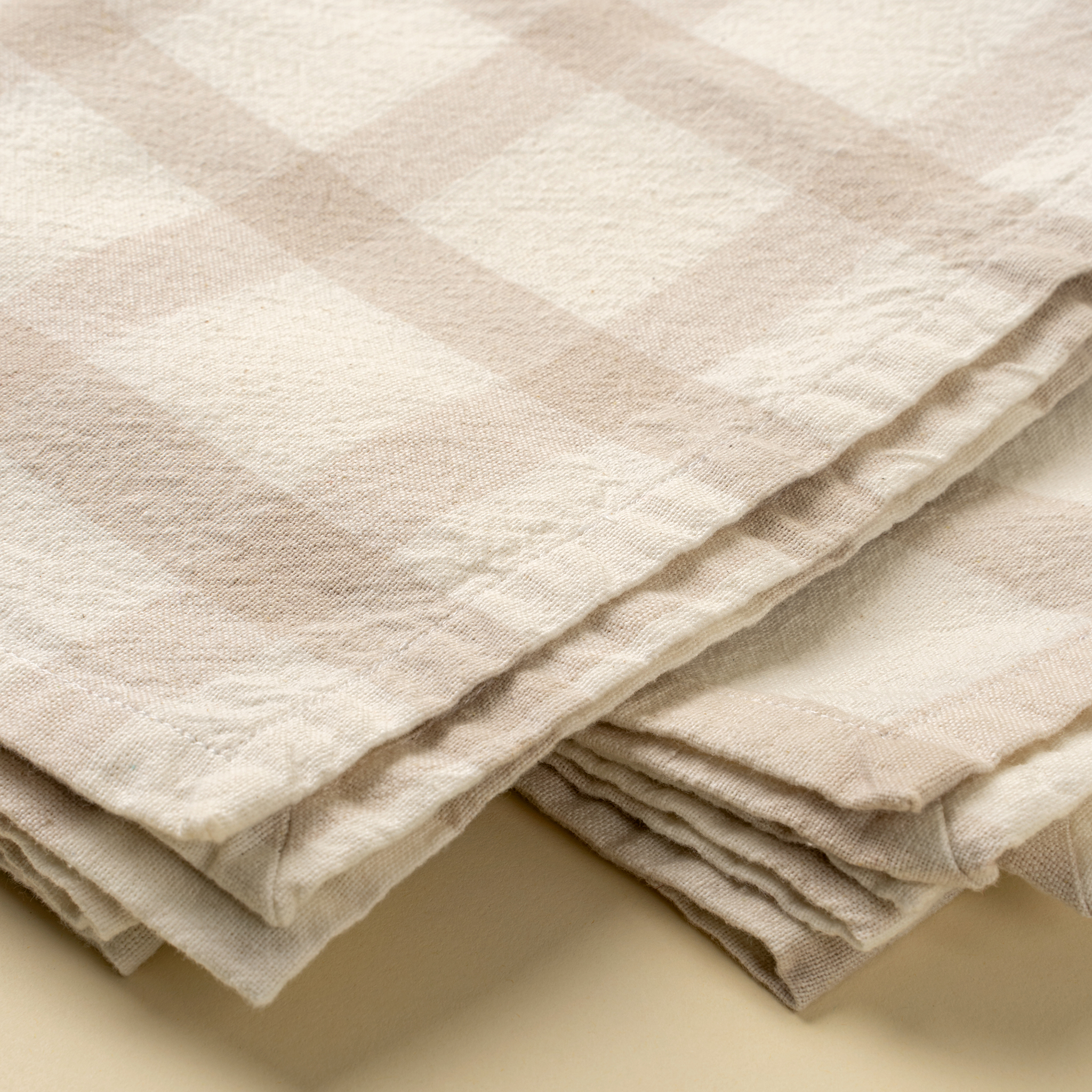 Classic gingham print in warm, neutral tones
