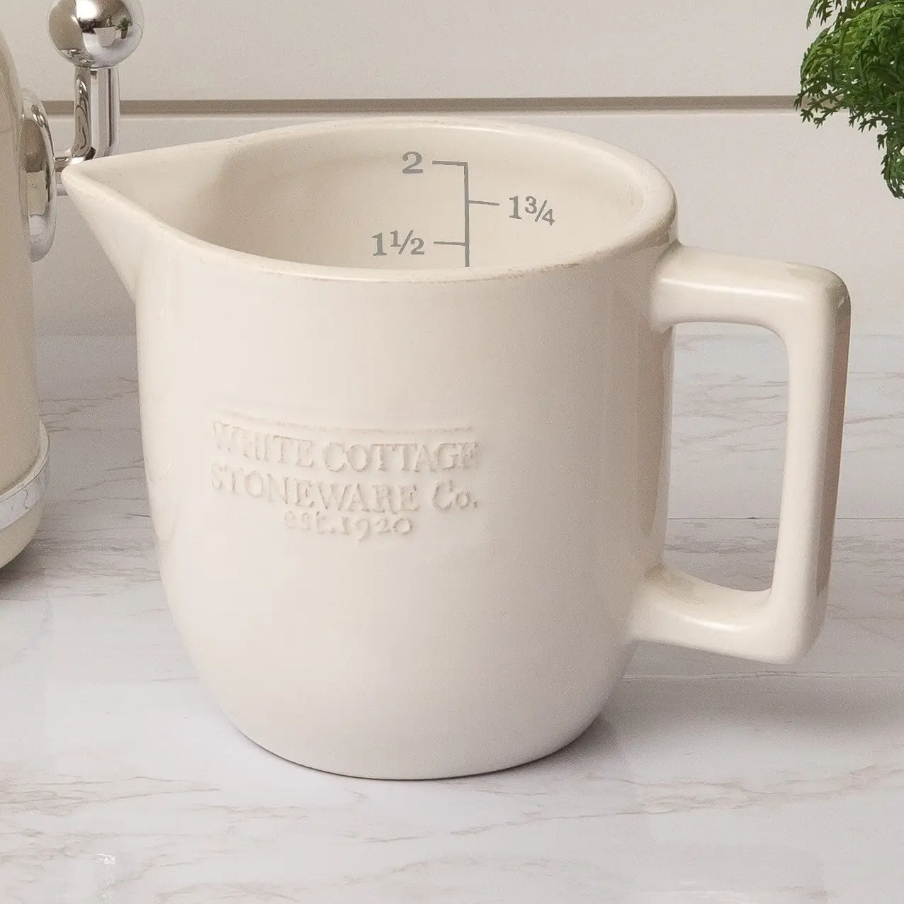 white cottage ceramic measuring cup