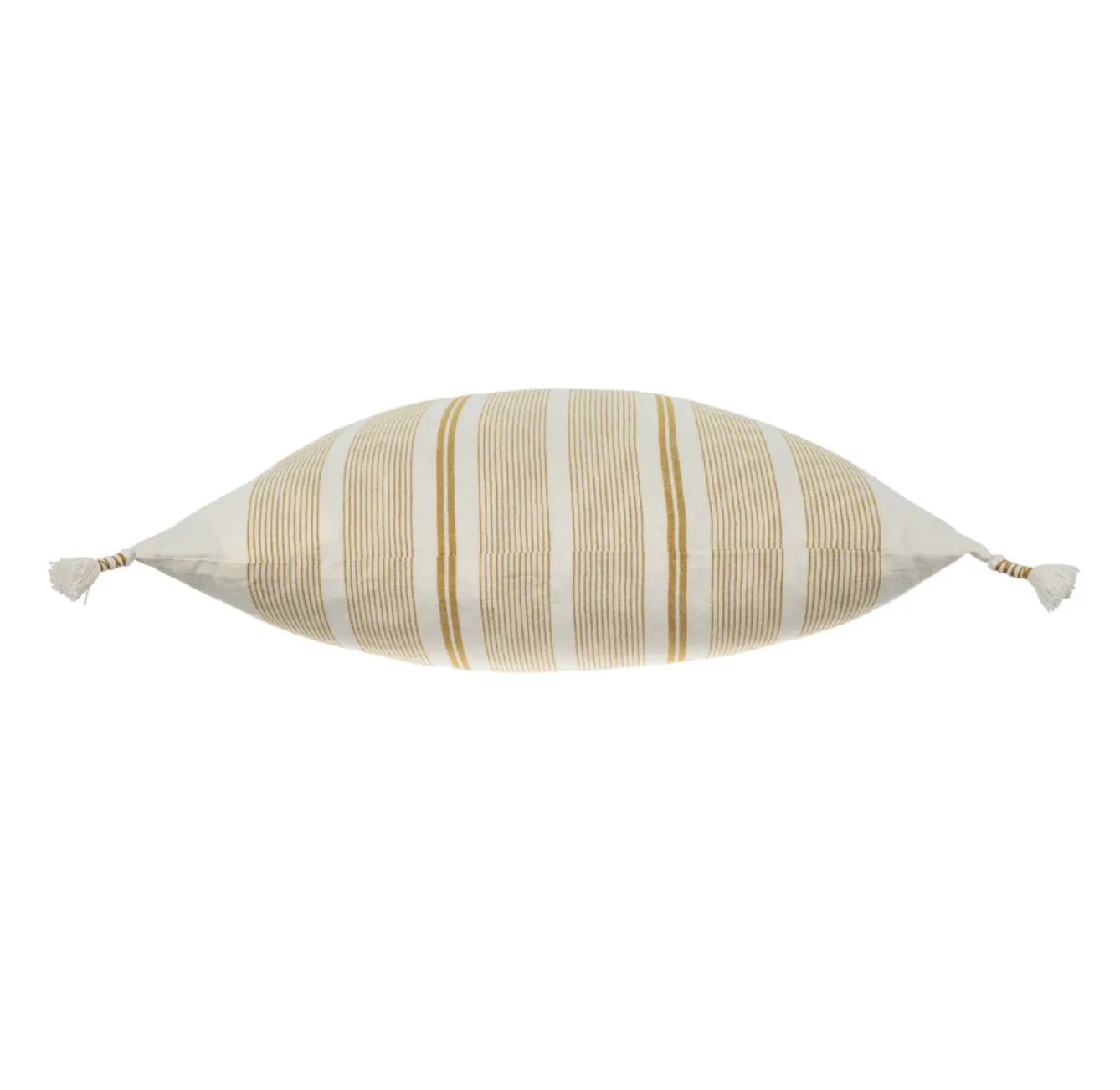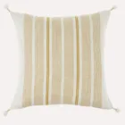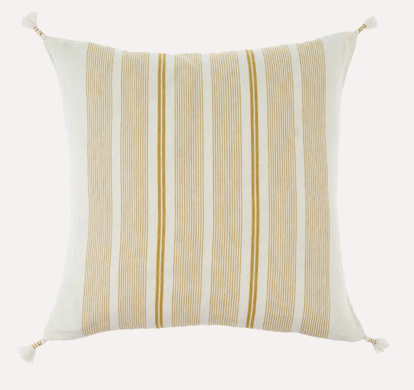 The woven ochre stripes of the Cape May Linen Pillow are woven and not printed for an extra fresh and crisp look. With classic pinstripes and hand wrapped tassels at each corner, this pillow styles well with coastal and monochromatic colour palettes for contemporary feeling layered sofas and beds. Complete with a premium feather down filler for fabulous fluff factor and comfort you’ll want to sink your head into. Machine Wash Gentle.